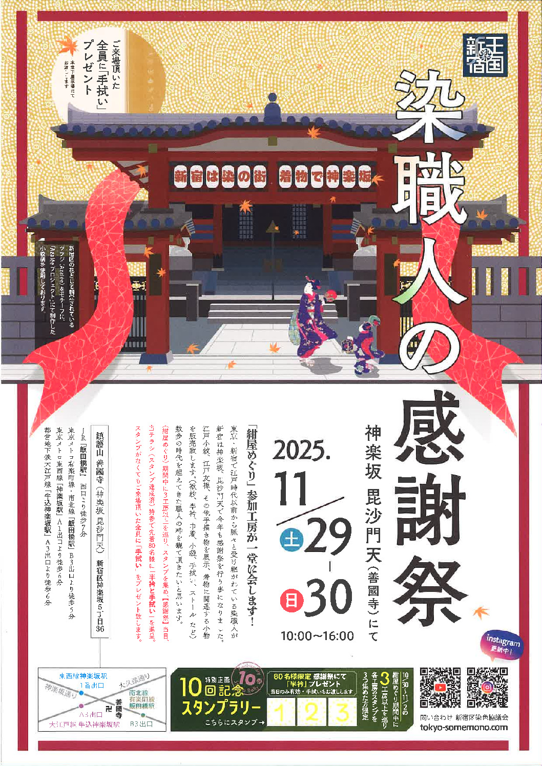東京・新宿で江戸時代以前から脈々と受け継がれている染職人が新宿は神楽坂、毘沙門天で感謝祭を行うことになりました。